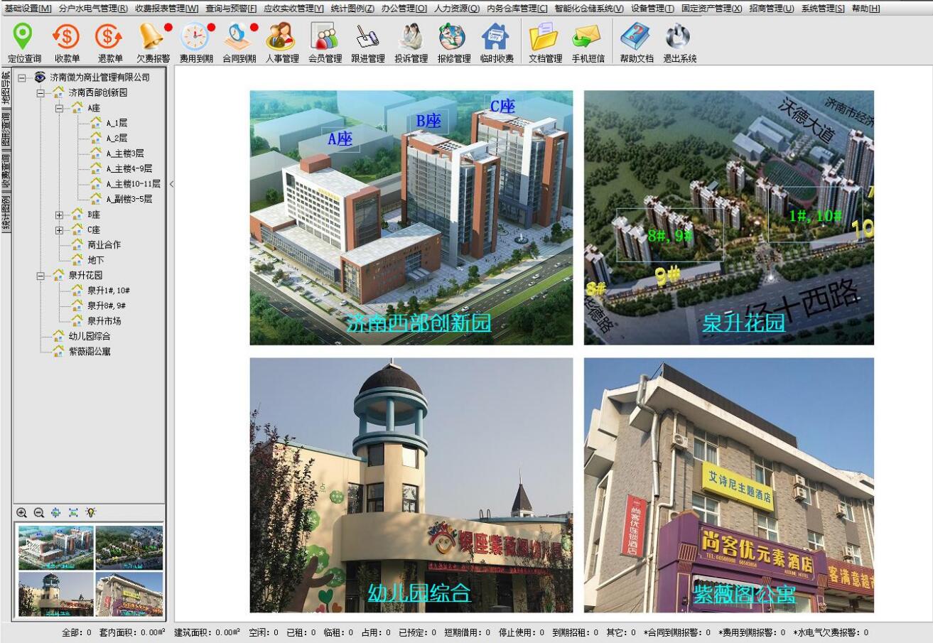 軟件包含:售樓銷控管理、物業(yè)管理、會員管理、招商管理、收銀管理、合同管理、商戶管理、返祖管理、收費(fèi)管理、財務(wù)管理、設(shè)備管理、倉庫管理、人事管理、固定資產(chǎn)管理、車輛管理、來電管理、短信管理、數(shù)據(jù)導(dǎo)入、手機(jī)APP領(lǐng)導(dǎo)查詢、移動抄表收費(fèi)等(全國及海外8700多家注冊用戶,香港 臺灣 羅馬尼亞都有客戶)